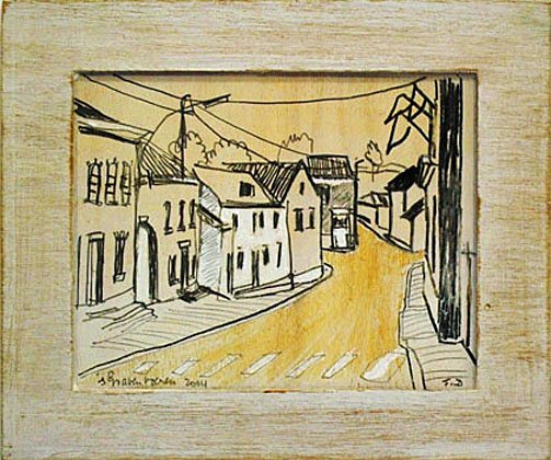 Ik heb met deze techniek een serie gemaakt van het dorp 's-Gravenvoeren in de Voerstreek (België).Het is lekker snel en 'primitief' tekenen. Een heel dankbare techniek met vaak verrassende resultaten.